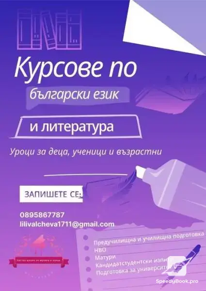 Частна школа - “ Мечтатели” предлага индивидуално и групово /присъствено и индивидуално обучение, частни уроци и курсове по българки език и литература за предучилищна и училищна подготовка, за подготовка за НВО (след 4, 7 и 10 клас), за матури (12 клас), за кандидатстудентски изпити (след 12 клас) измежду други курсове по хуманитарни науки като история, философия, психология, педагогика и др.