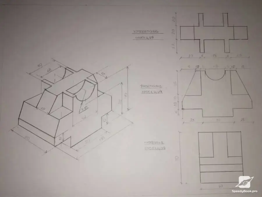 Production of a drawing according to given dimensions, as well as redrawing of finished drawings.