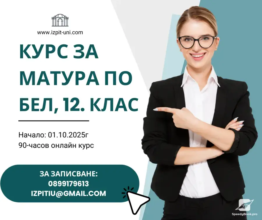 За кого: За ученици, които желаят да усъвършенстват знанията и уменията си и да постигнат високи оценки на матура по БЕЛ, 12. клас.