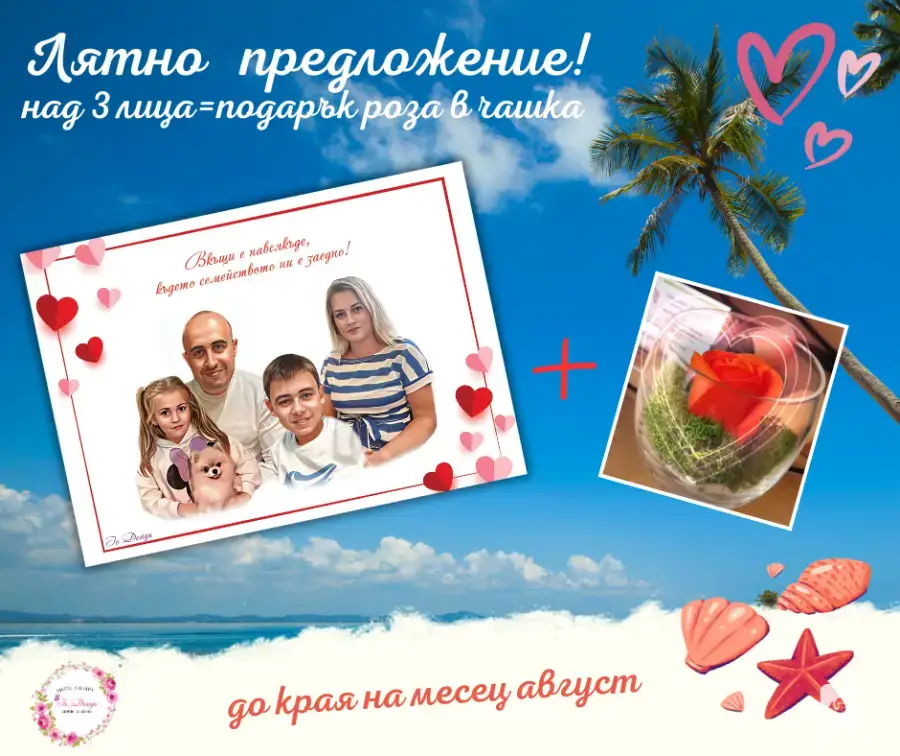 ! СПЕЦИАЛЬНЫЙ БОНУС: КАЖДЫЙ, кто закажет цифровой портрет из 3 и более лиц до конца АВГУСТА, получит ароматизированную мыльную розу в чашке с натуральной речной галькой со скандинавским мхом в элегантной чашке, которая подойдет к любой книжной полке и письменному столу!